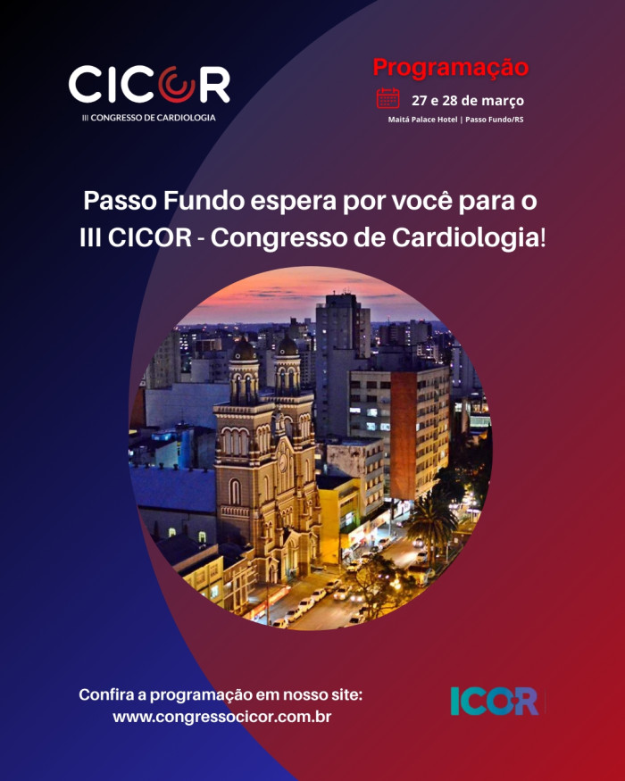 Nos dias 27 e 28 de março acontece o III CICOR – Congresso de Cardiologia, no Maitá Palace Hotel, reunindo especialistas, profissionais da saúde e grandes nomes da área para dois dias de atualização científica, troca de experiências e conexão com as principais inovações da cardiologia.