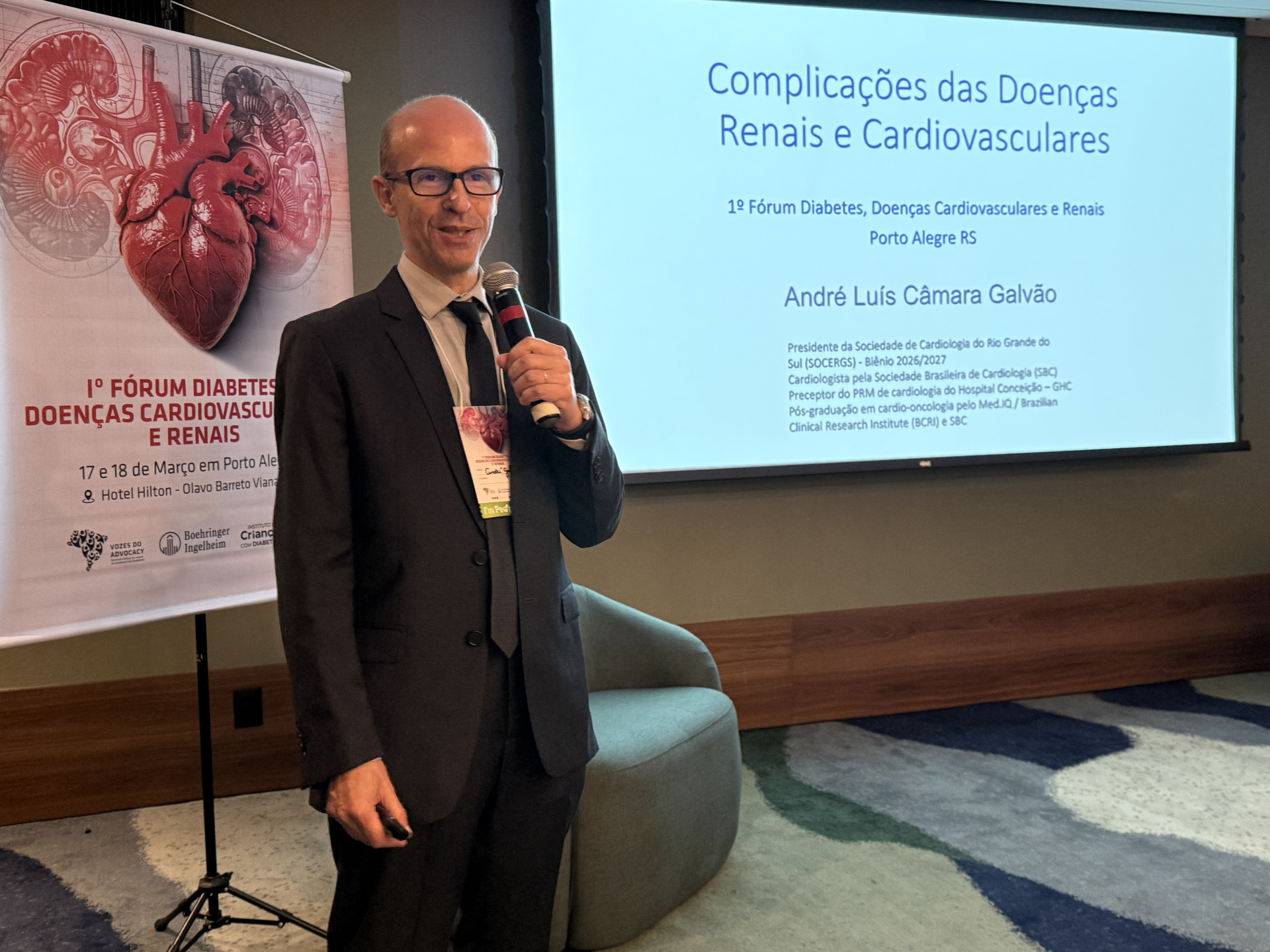 A Sociedade de Cardiologia do Estado do Rio Grande do Sul (SOCERGS) teve participação de destaque no I Fórum de Diabetes, Doenças Cardiovasculares e Renais, realizado nos dias 17 e 18 de março de 2026, em Porto Alegre. Representada pelo presidente Dr. André Luis Câmara Galvão, a entidade levou ao encontro uma abordagem centrada na prevenção, no controle de fatores de risco e na importância do manejo integrado das doenças crônicas, especialmente diante do impacto crescente das complicações cardiovasculares associadas ao diabetes.