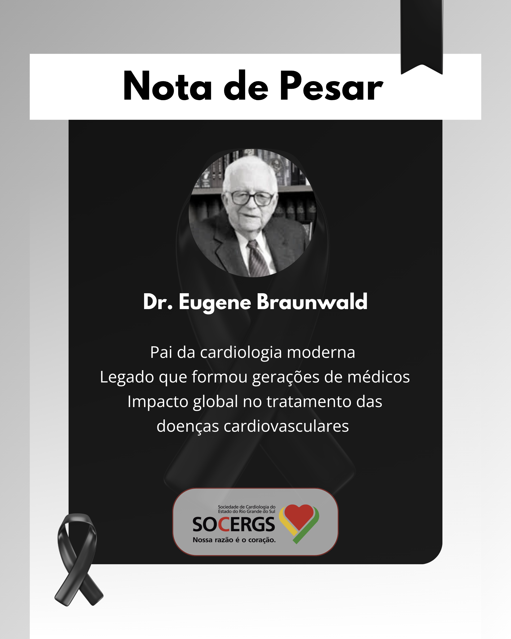 A Sociedade de Cardiologia do Estado do Rio Grande do Sul (SOCERGS) presta uma homenagem reverente a Eugene Braunwald, reconhecido mundialmente como o pai da cardiologia moderna e uma das maiores referências da história da medicina, falecido aos 96 anos.